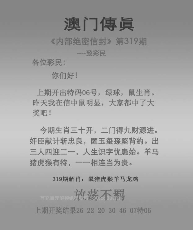 | 321期九肖30码【精准四码】已公开! |